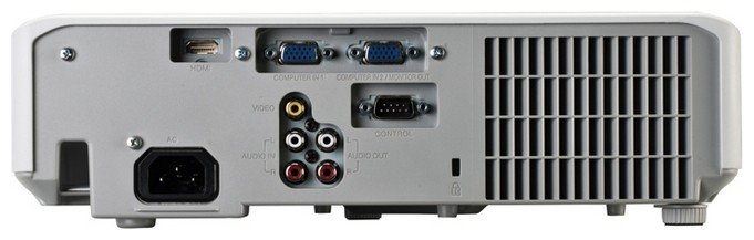 Проектор оснащён всеми необходимыми разъёмами для подключения практически любых внешних устройств и имеет выход на контрольный монитор.